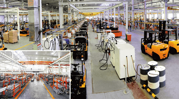 建立了國(guó)內(nèi)獨(dú)立的叉車研發(fā)及生產(chǎn)基地 擁有3條叉車總裝線、6條部套裝配線、2條油漆涂裝線和焊接機(jī)器人